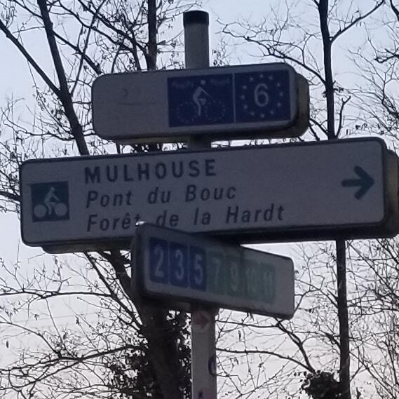 Von Basel aus wollte ich den Eurovelo-Radweg 6, der von Basel bis an die Atlantik-Küste Frankreichs führt, fahren. In Basel war noch alles gut ausgeschildert, doch schon nach wenigen Kilometern hat mich die Markierung im Stich gelassen. Nachdem ich dann einige Kilometer hin und wieder zurück und in die nächste Richtung und wieder zurück gefahren bin, habe ich endlich durch viel Nachfragen der wirklich freundlichen Menschen dort, die Drei-Länder-Brücke erreicht und bin darüber nach Frankreich gefahren :)
